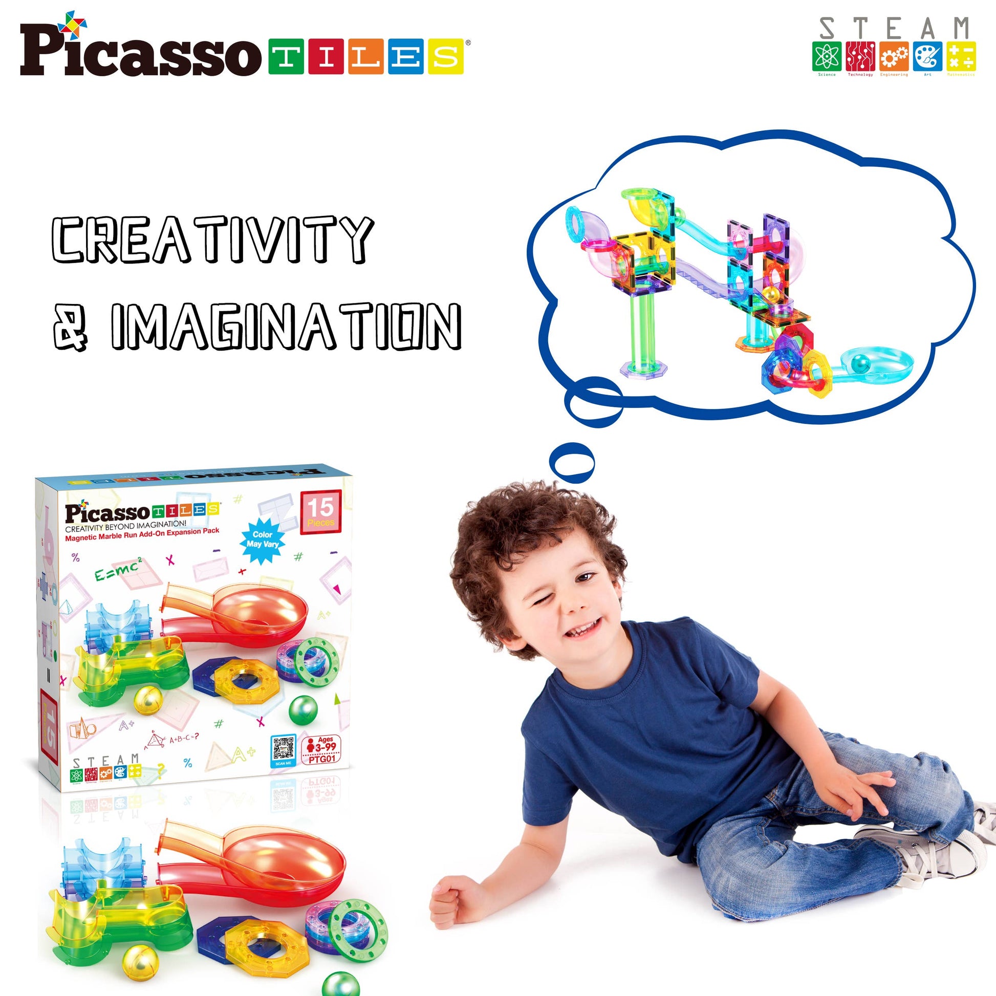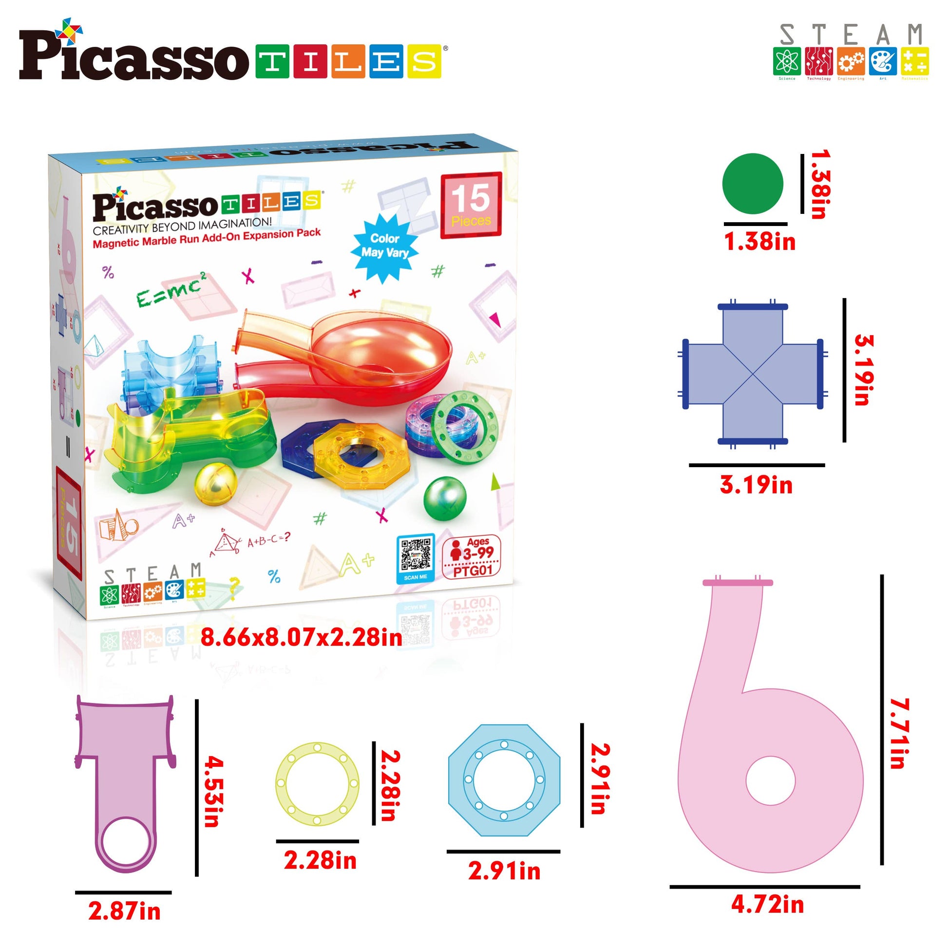 PicassoTiles 15-piece Magnetic Marble Run expansion pack takes your toy set tiles to the next level. The possibilities are boundless, allowing you to scale your structures as large as your imagination desires. It can also be enjoyed as a standalone product. These magnetized building blocks open up a world of creative potential, enabling unique designs and seamless integration with our other magnet construction toys.