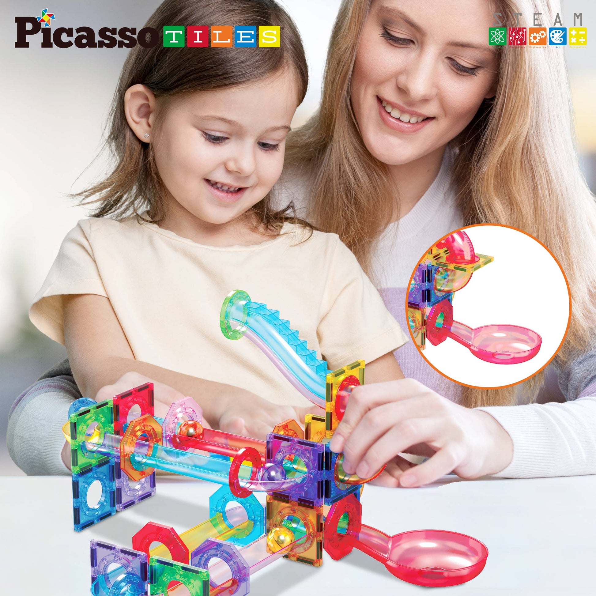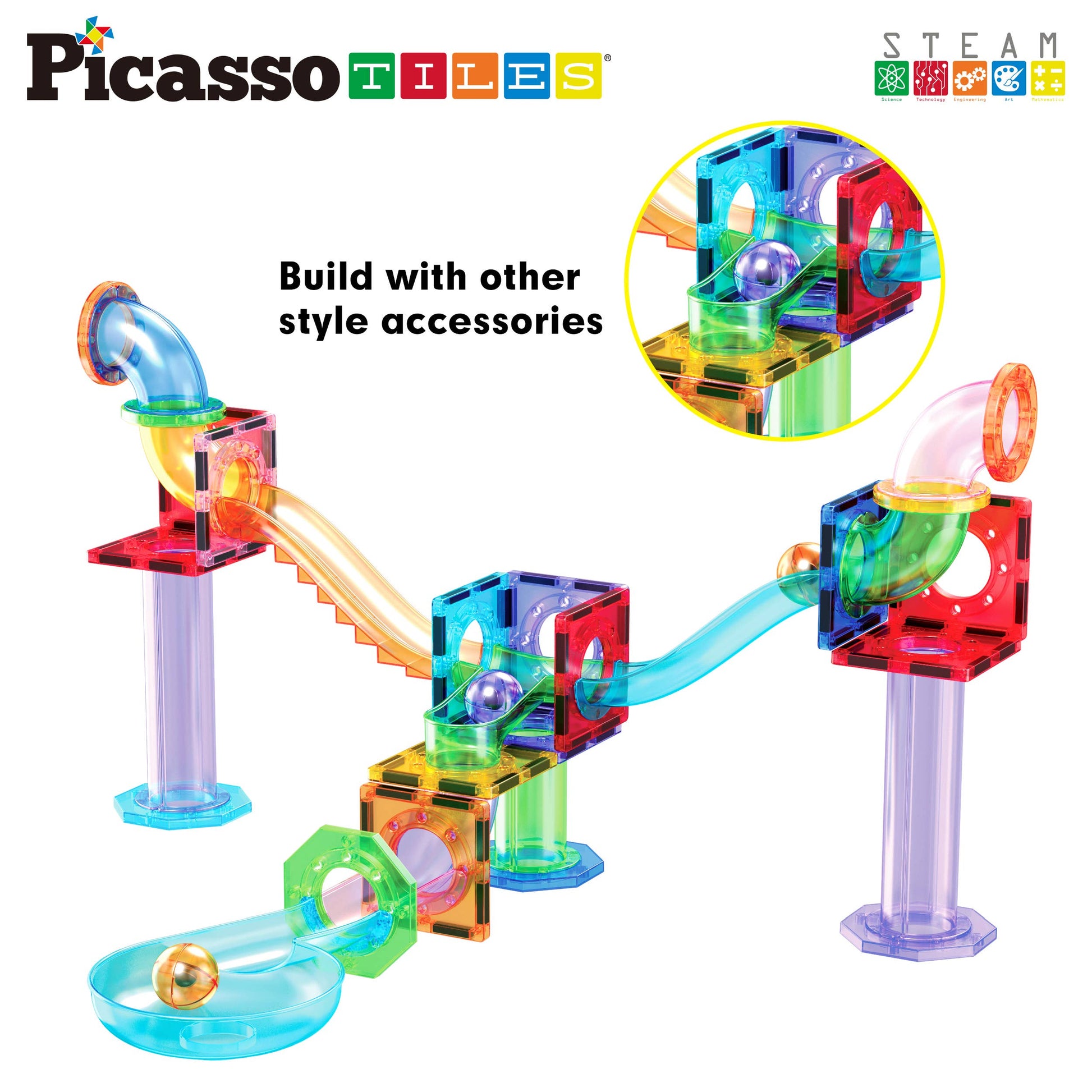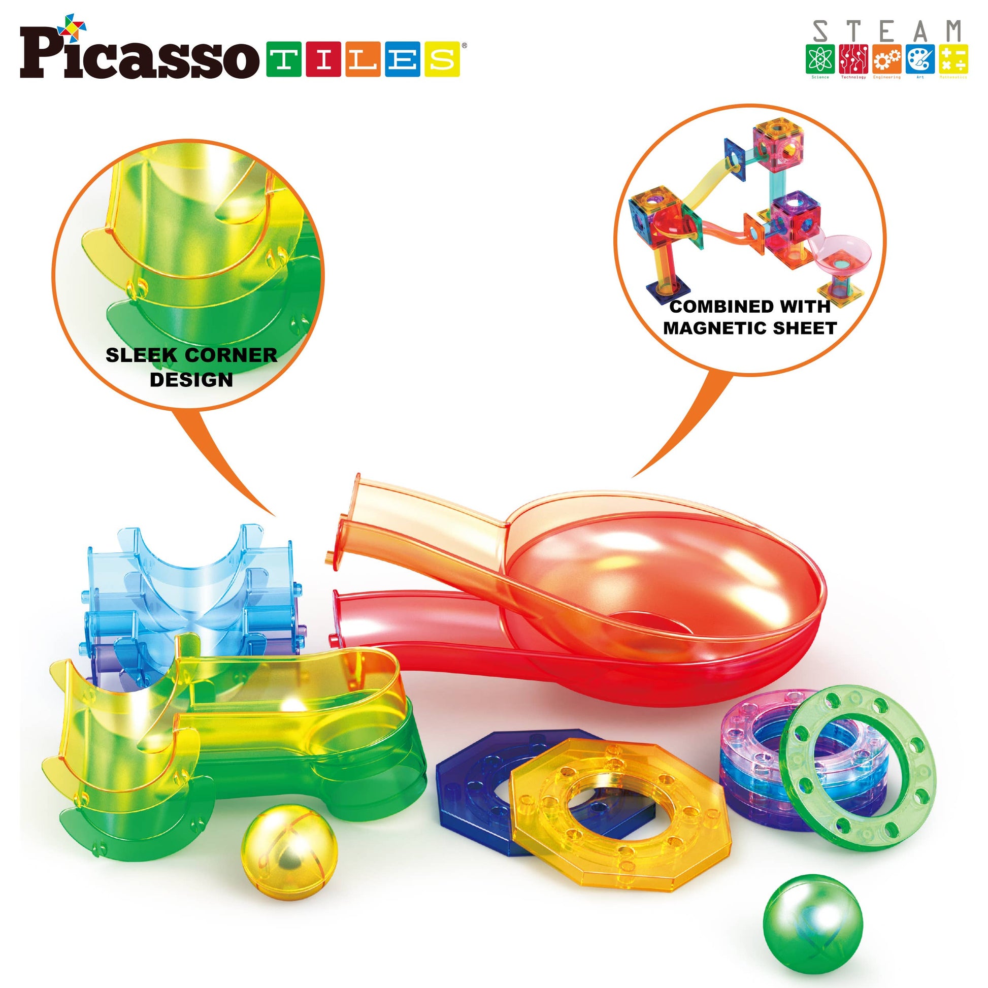 PicassoTiles 15pc Magnetic Marble Run Add-On Expansion Pack for Magnet Tile Building Blocks Maze Construction Toy Kit Educational STEM Learning Enhances Creativity Imagination Children Ages 3+ PTG01