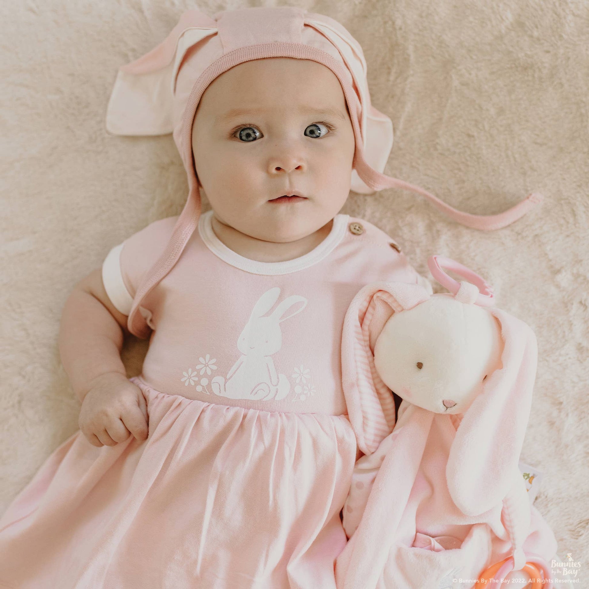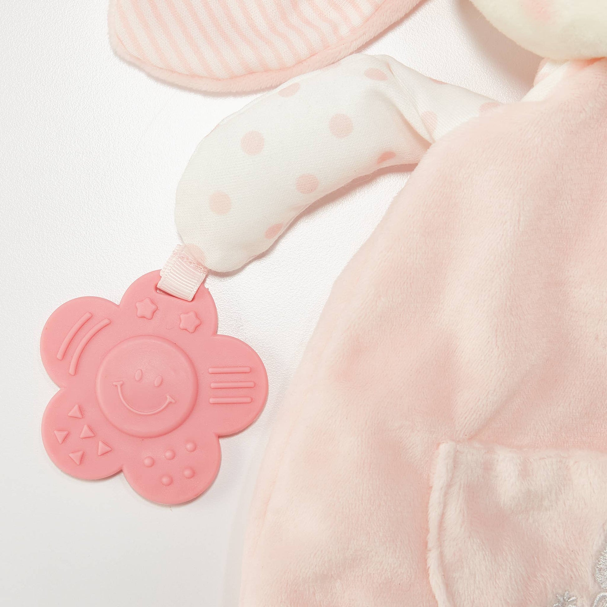 Say hello to our newest addition, Blossom's Activity Toy! This sweet bunny pal has multiple teether options for gentle chewing and is great for sensory development. The soft pink velour body and patterned knit ears, arms and legs provide additional touch points. Blossom is an easy transition activity toy, meant for strollers, car seats and tummy time!