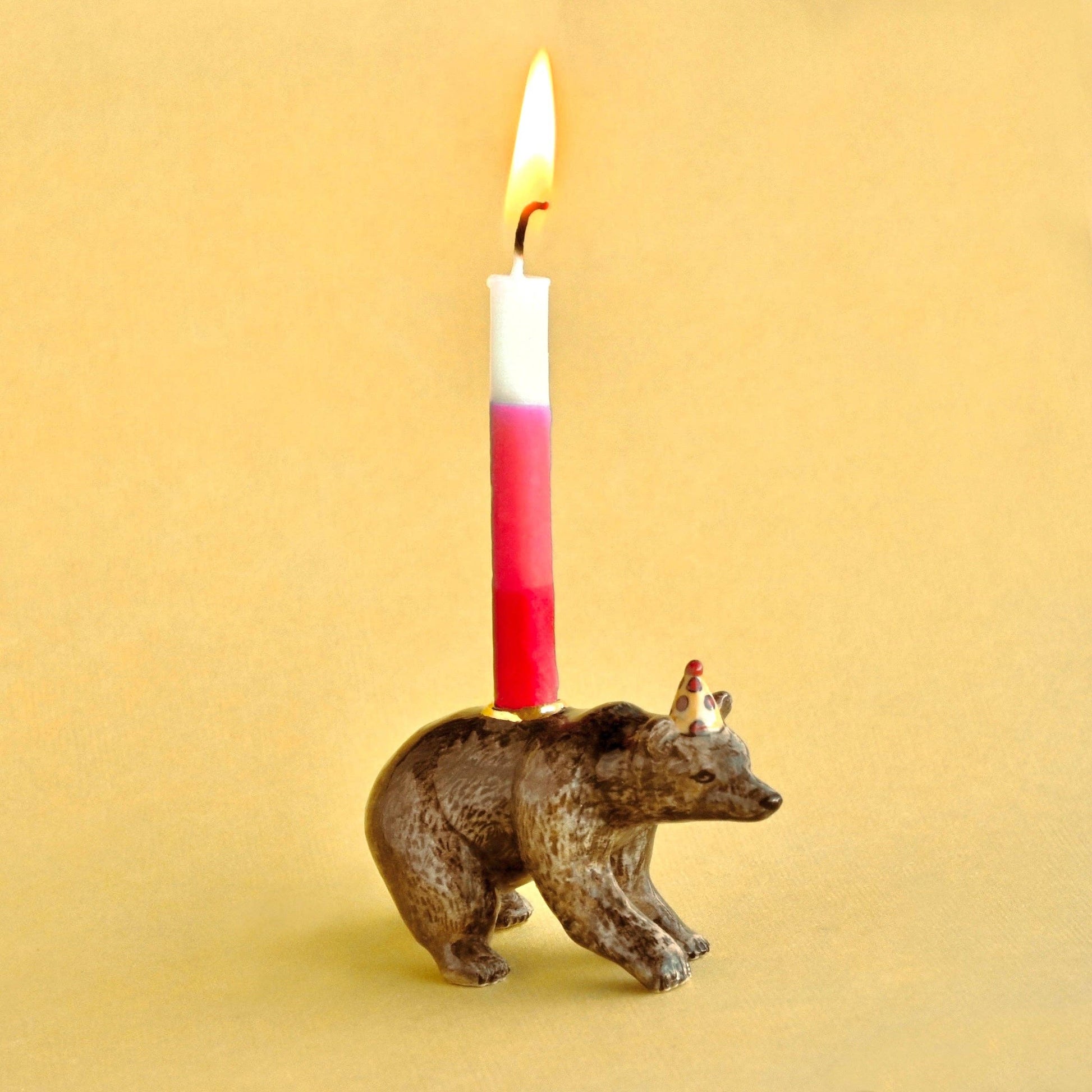Invite the wilderness to your celebrations with our Brown Bear Cake Topper. This hand-painted, heirloom-quality porcelain piece captures the essence of this majestic creature, right down to its dense fur and heavy paws. Adorned with a cheerful polka-dot hat, it's perfect for adding a touch of the wild to kids' parties and adult soirees alike.