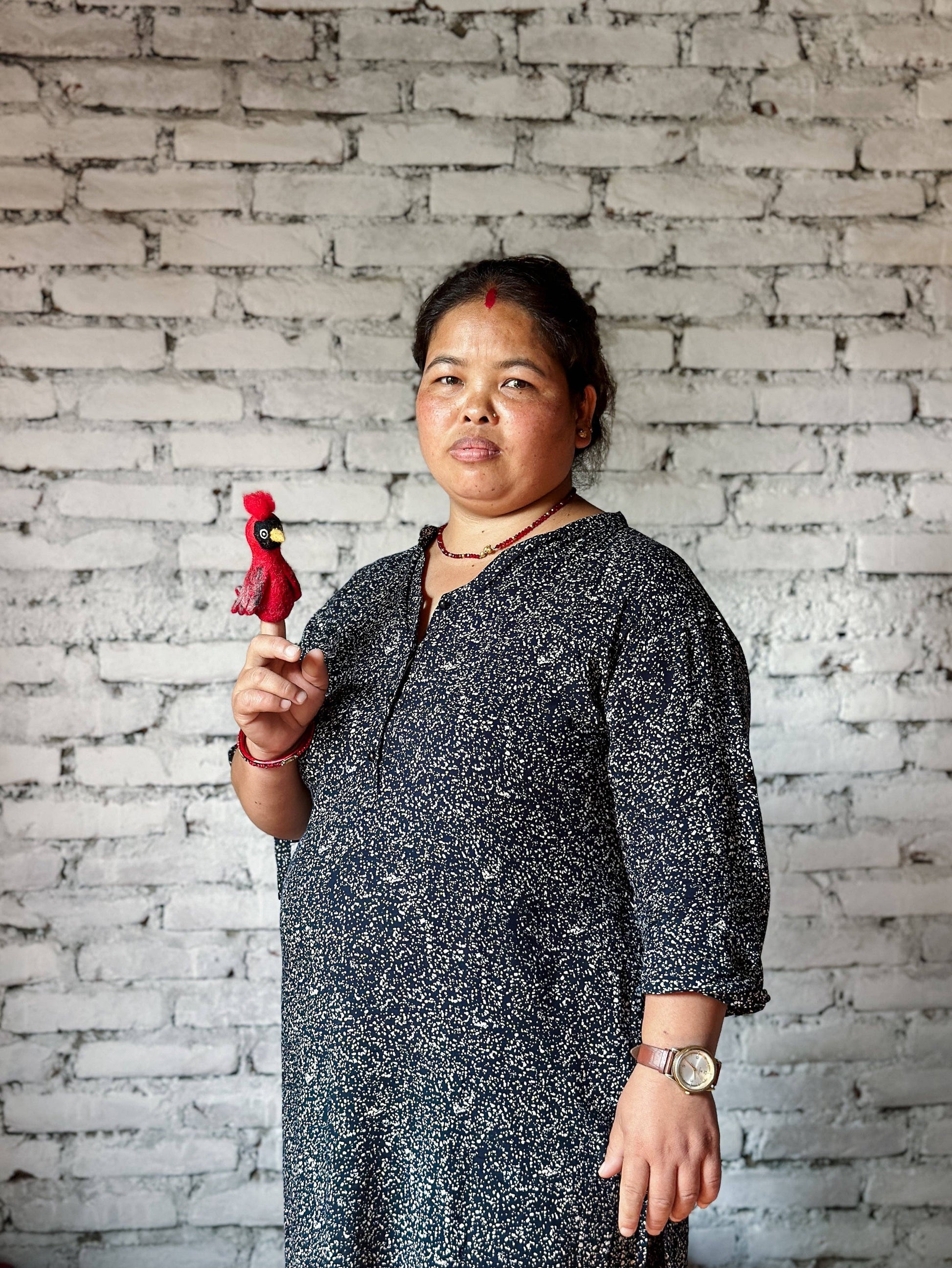 Our talented team of 15 makers in a small workshop focuses solely on crafting these unique finger puppets. Each one is meticulously handmade using wool, from wet felting to needle felting, making them truly one-of-a-kind.