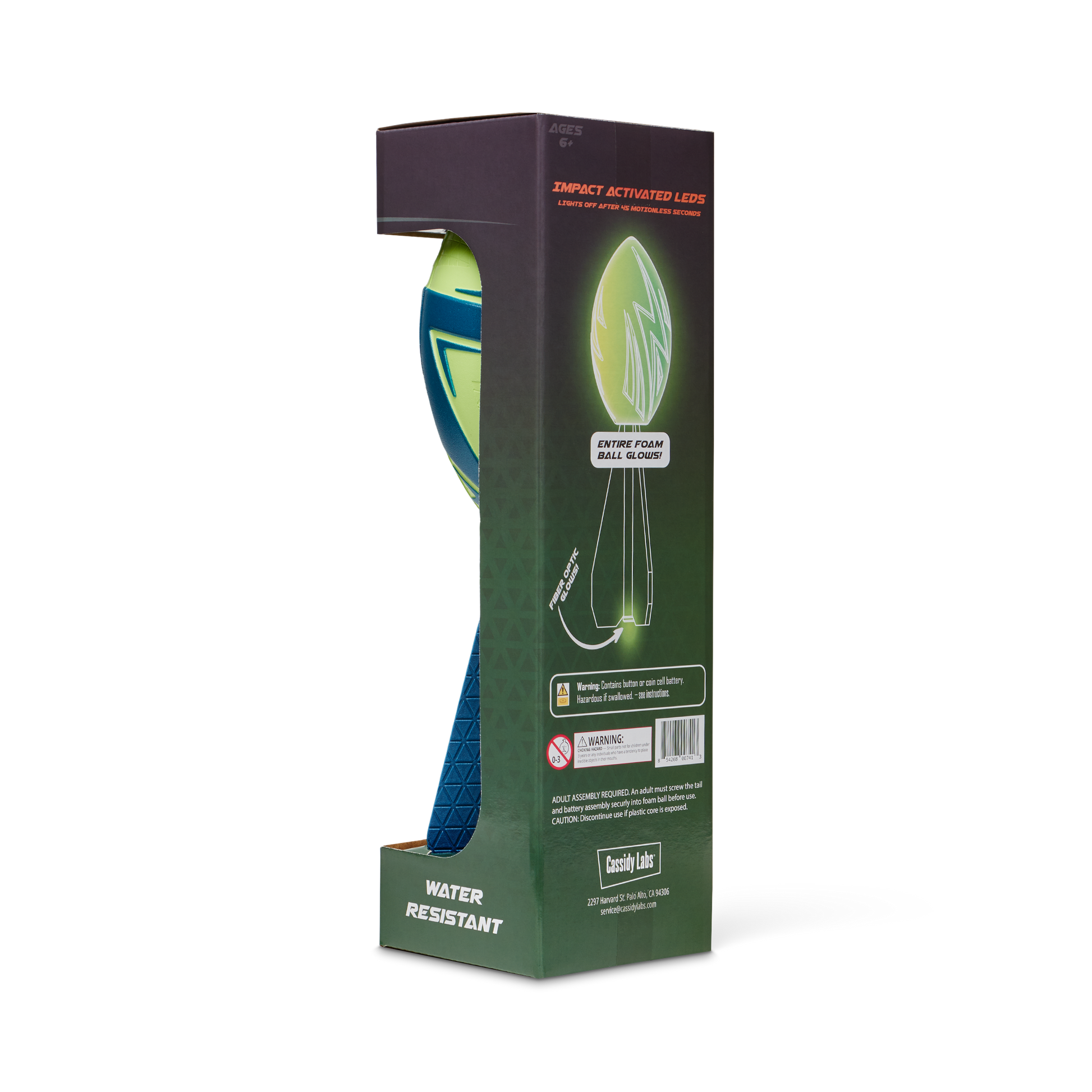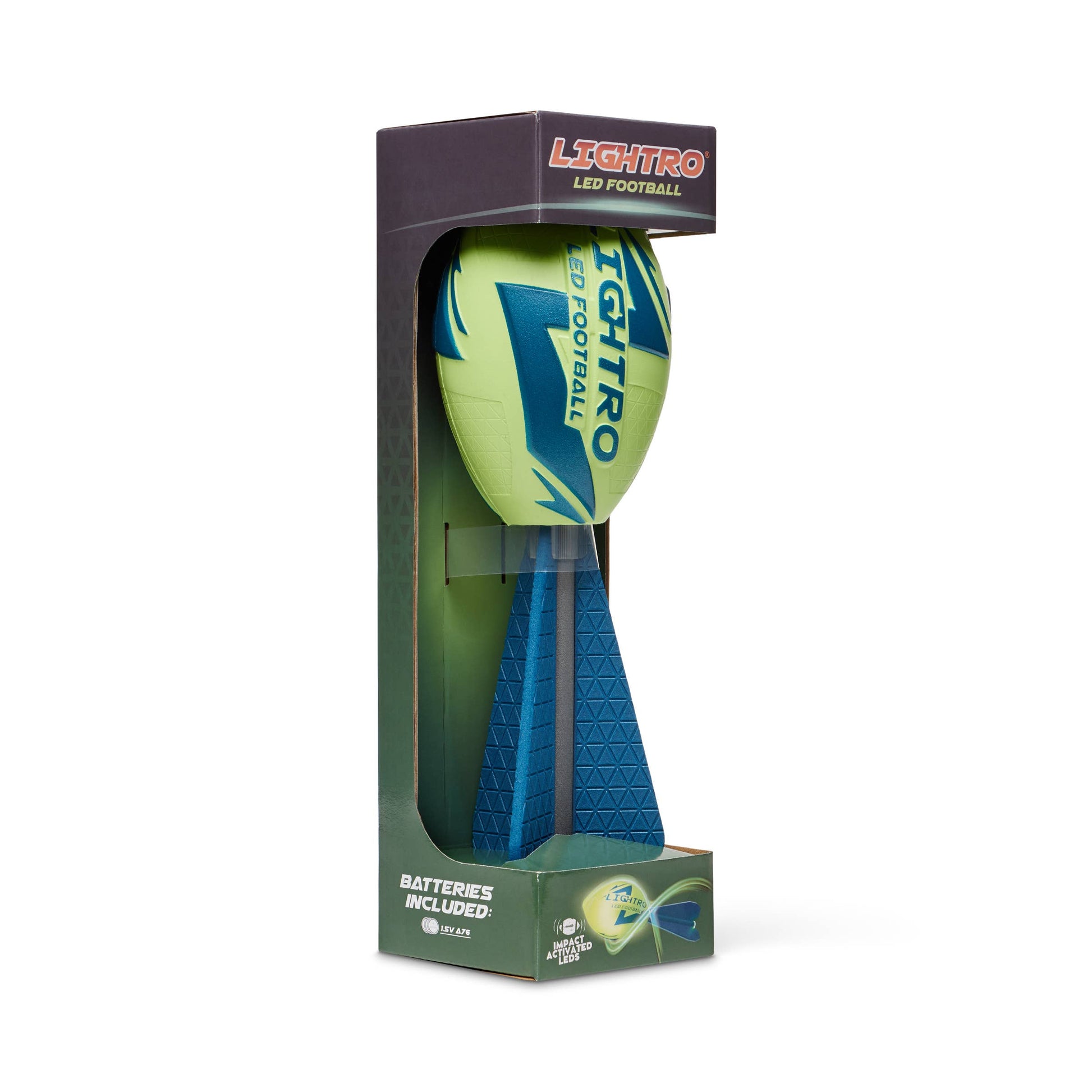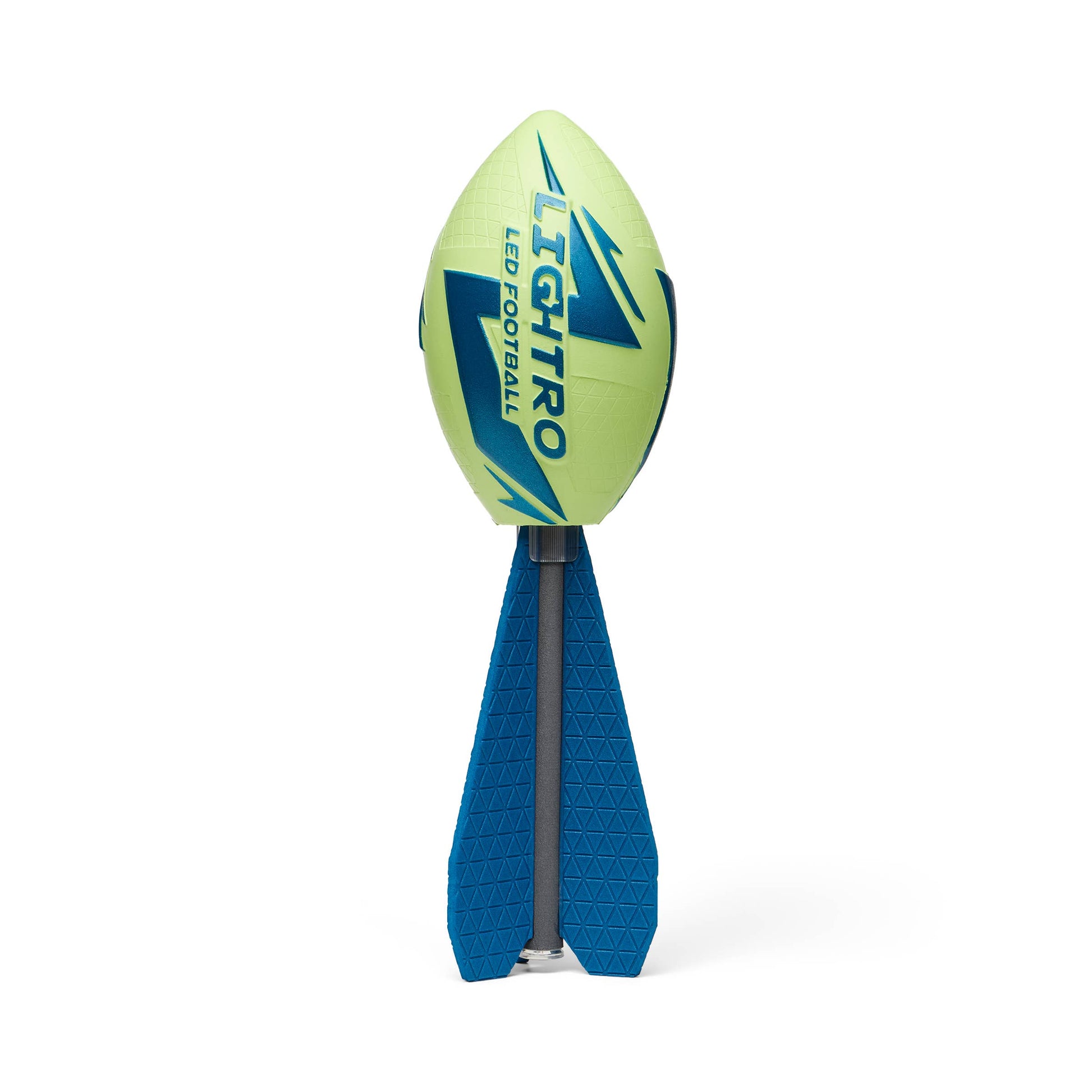 Lightro is a glow in the dark football illuminated automatically when you start playing, and automatically turns off when you stop. It will stay illuminated for a full minute after the last impact, so you have plenty of time to find any missed catches.