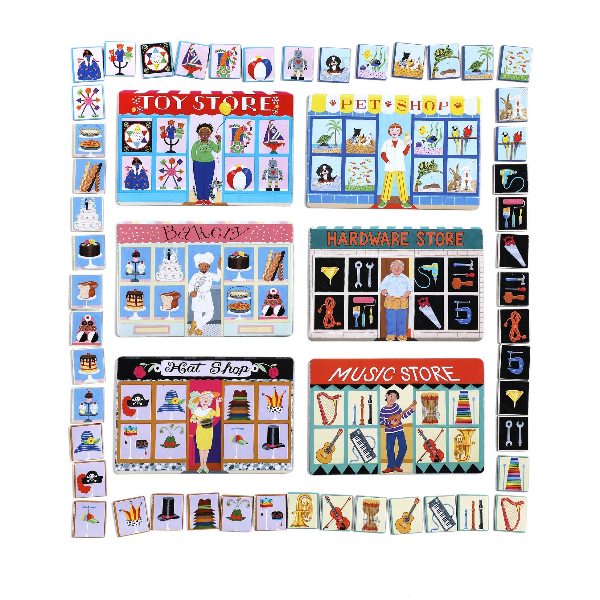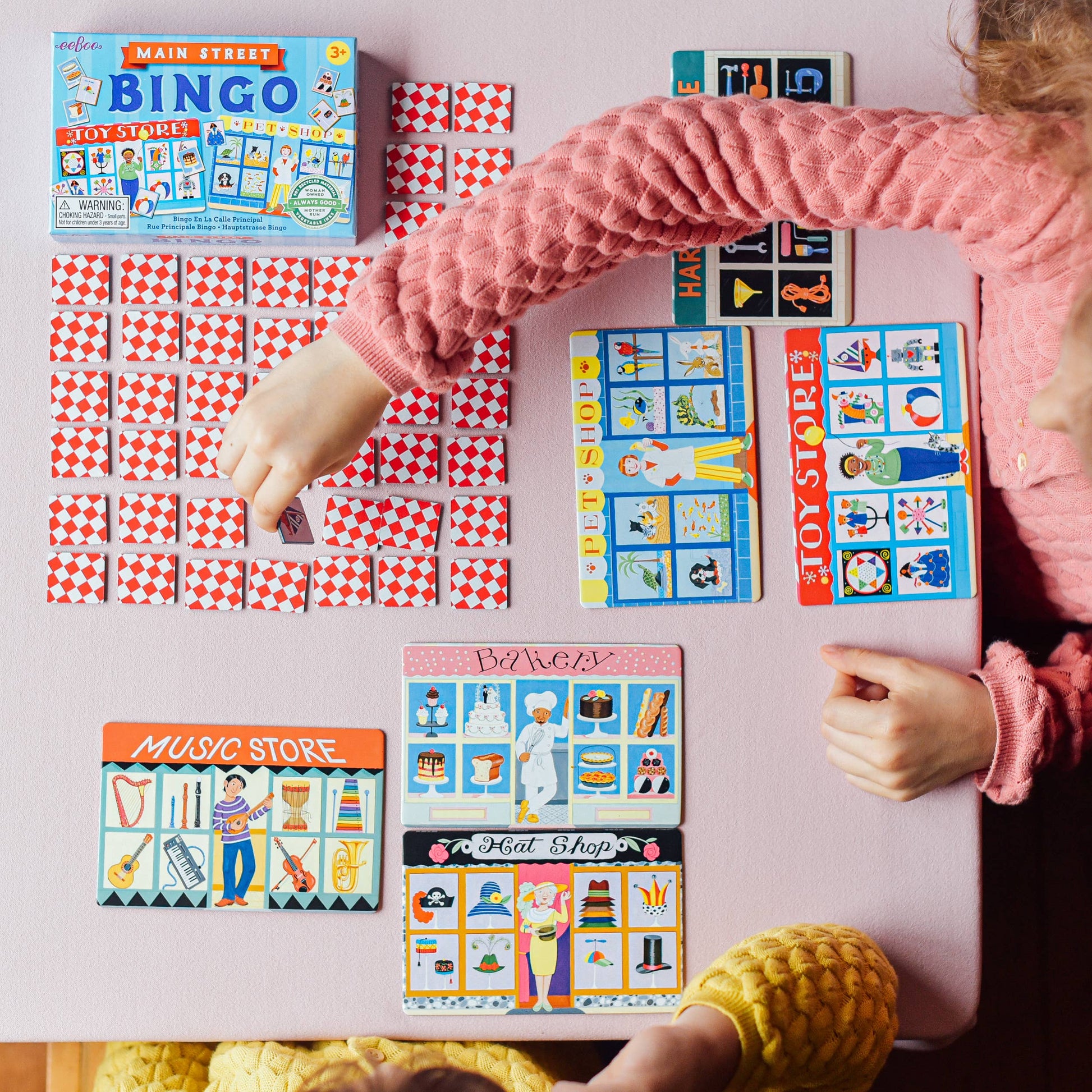 Main Street Little Bingo is a fun twist on the classic bingo game. The six playing boards feature charming storefronts from Main Street and their friendly owners. The first player to match all the tiles to their board and fill their store wins the game. Illustrated by Lizzy Rockwell.
