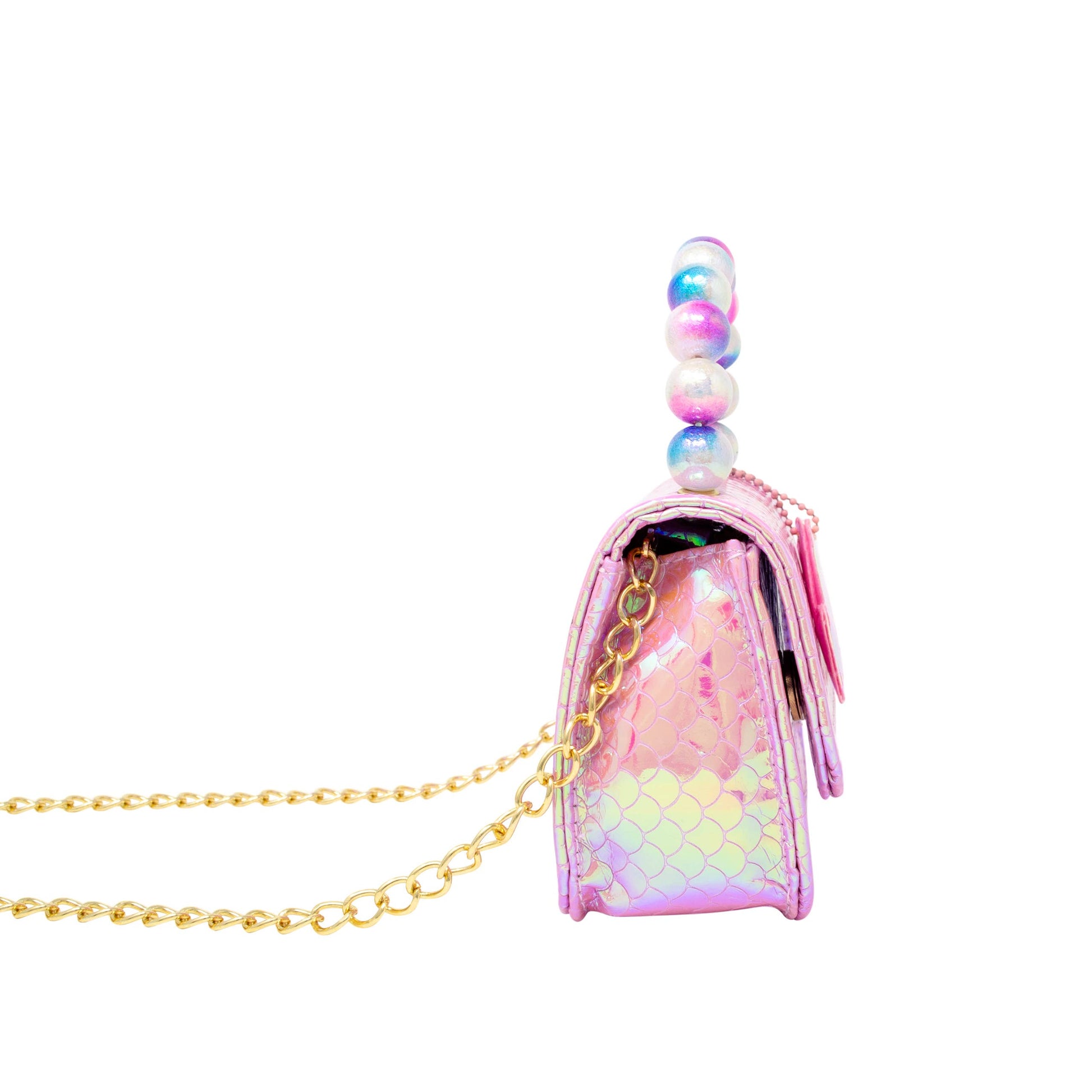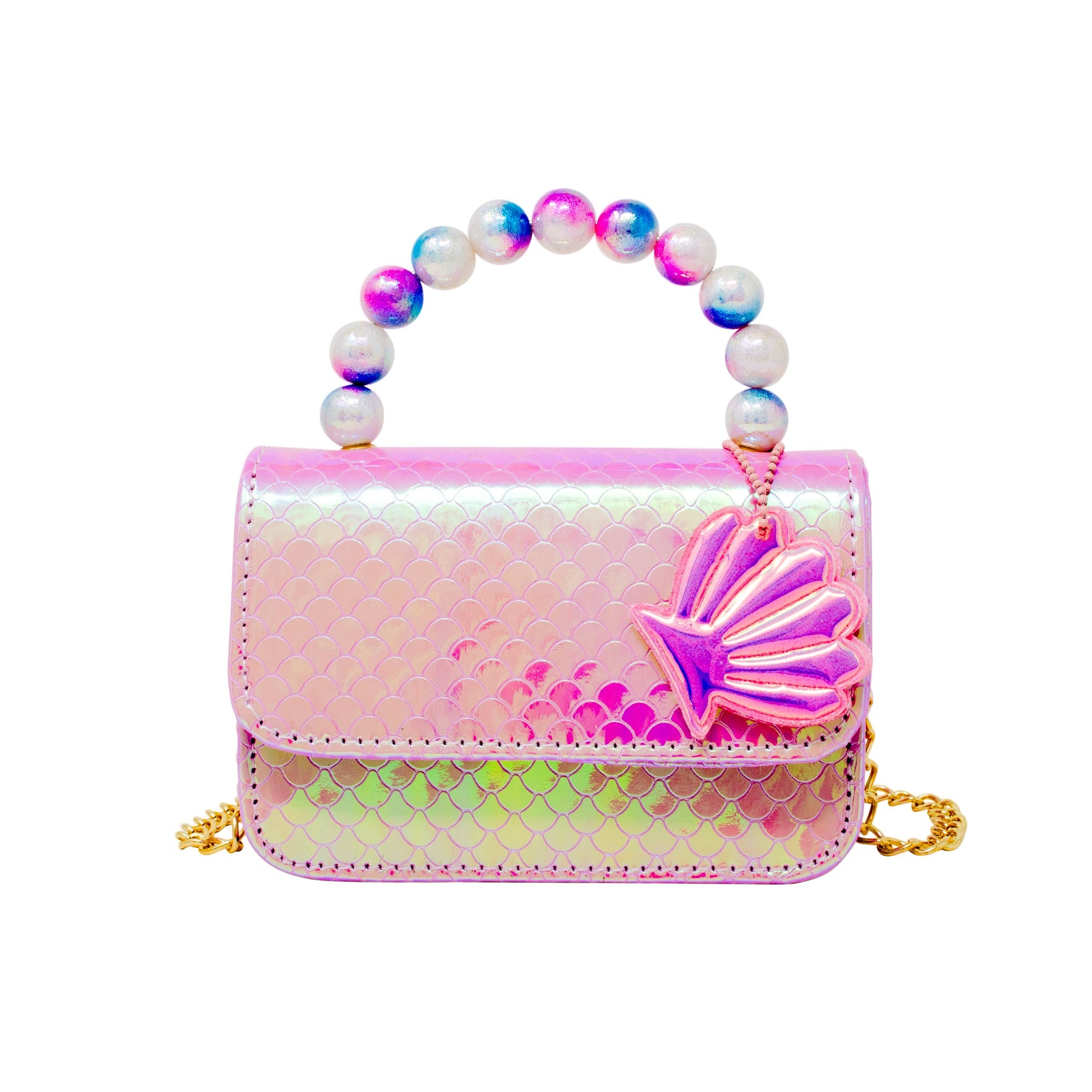 Calling all mini mermaids! This Mermaid Pearl Handle Seashell Bag is the perfect accessory for a day out at sea with its shiny mermaid scale pattern, colorful pearl handle, and a delightful removable seashell charm. Plus, the gold chain strap adds a touch of bougie-ness that's sure to make your little mermaid feel like royalty. Talk about shell-ebration!