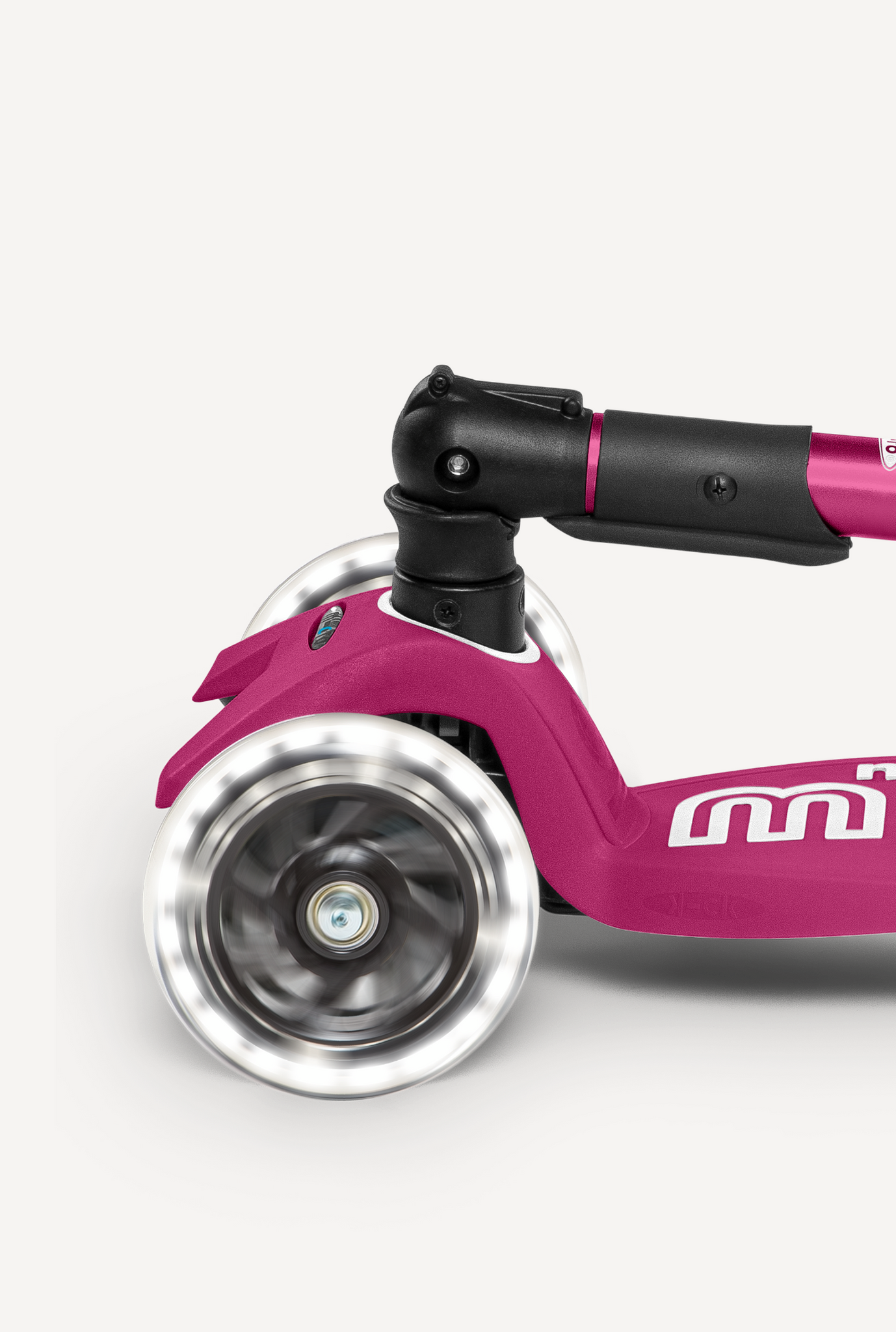 The most portable scooter featuring a foldable design, light-up wheels (no batteries needed), and an adjustable handlebar to grow with the rider.Ā