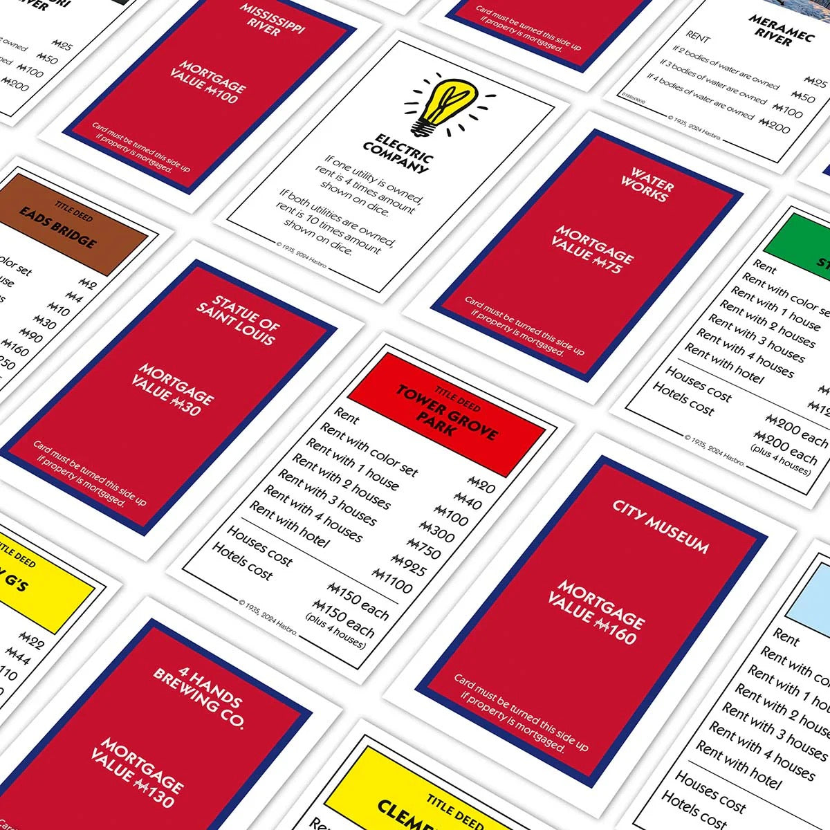 Welcome to the Monopoly St. Louis, MO Edition, a custom version celebrating the unique culture and vibrant spirit of one of Missouri's most dynamic cities. This board game brings the essence of St. Louis to life, allowing you to immerse yourself in its rich heritage and character.