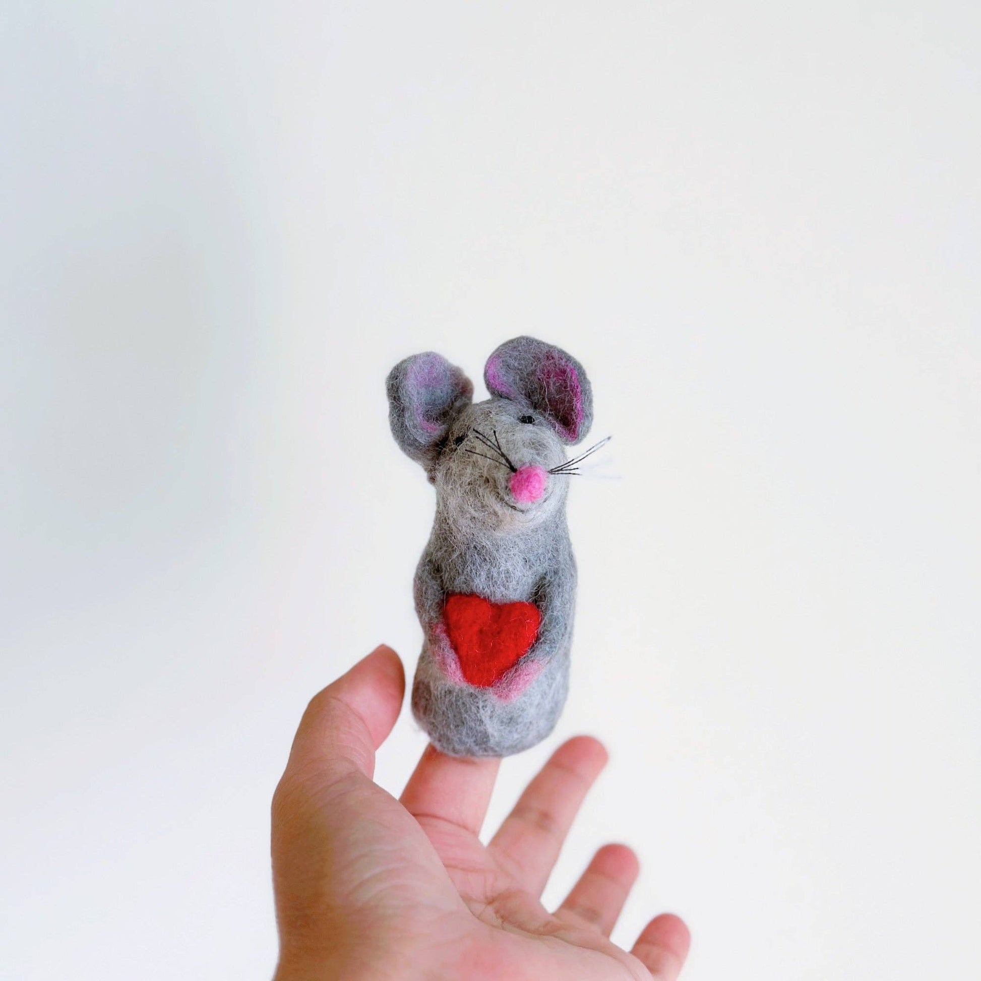 Our lovely mouse finger puppets are handmade in Nepal of 100% wool. It's needle felted and is 3D designed. It looks great from any angle. Perfect for storytelling prop! It is an ideal holiday gift for kids!