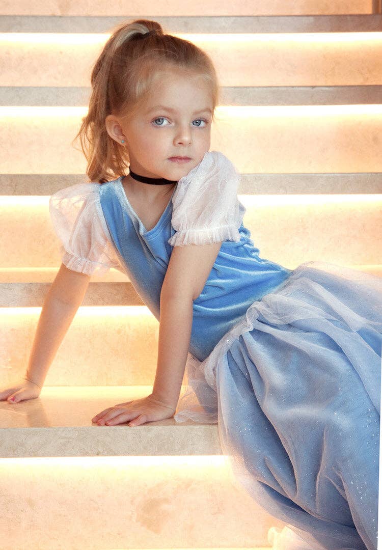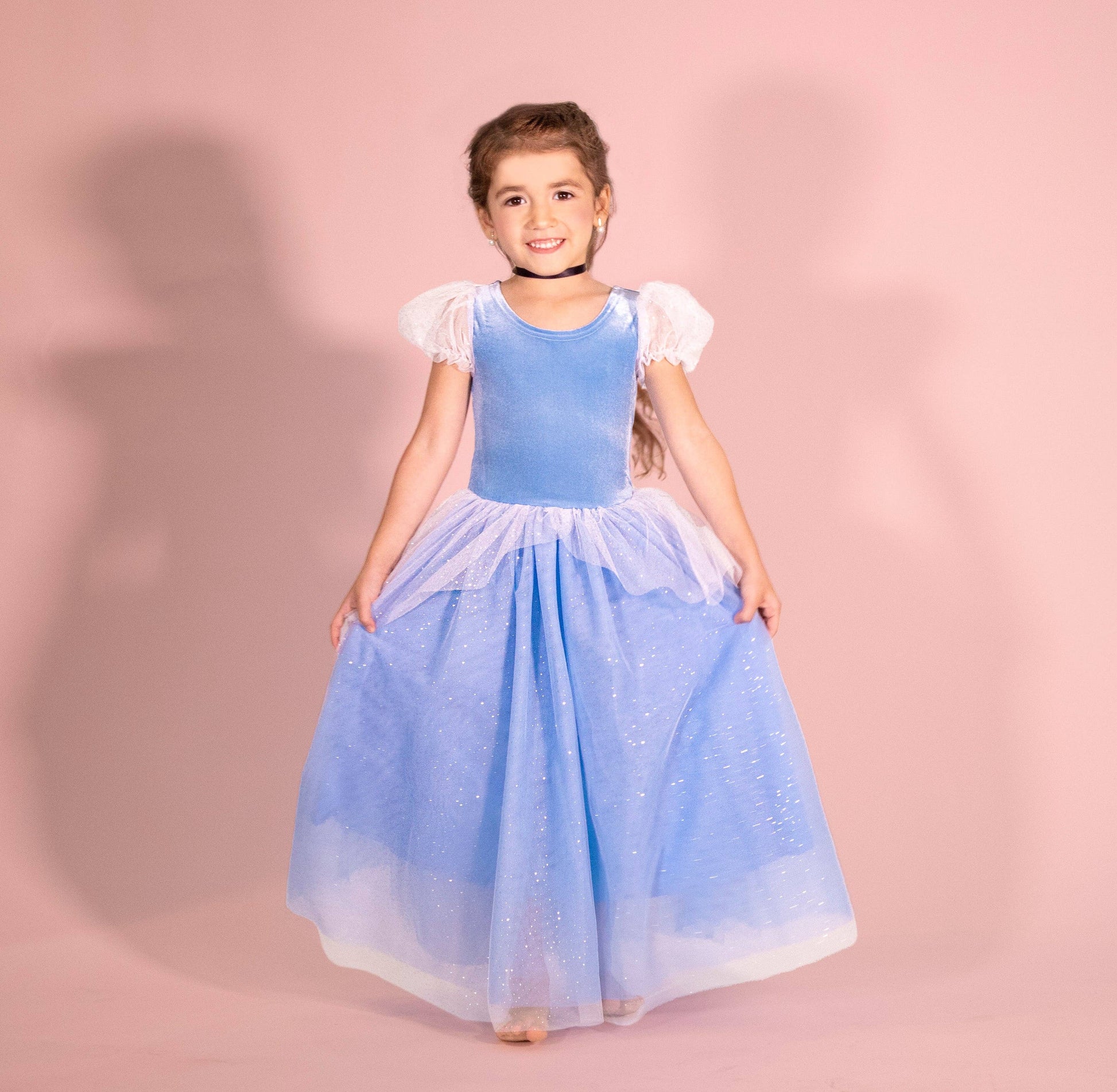 No need to find a magic wand, because the perfect Cinderella dress is here. We really wanted to make this dress extra dreamy, which is why we selected a magical glittery tulle in order to create a beautiful multiple layer skirt and puffy sleeves. The bodice is made from a soft, stretch velvet in the same baby blue as the rest of the gown. - Slim fit, size up for a looser fit.
