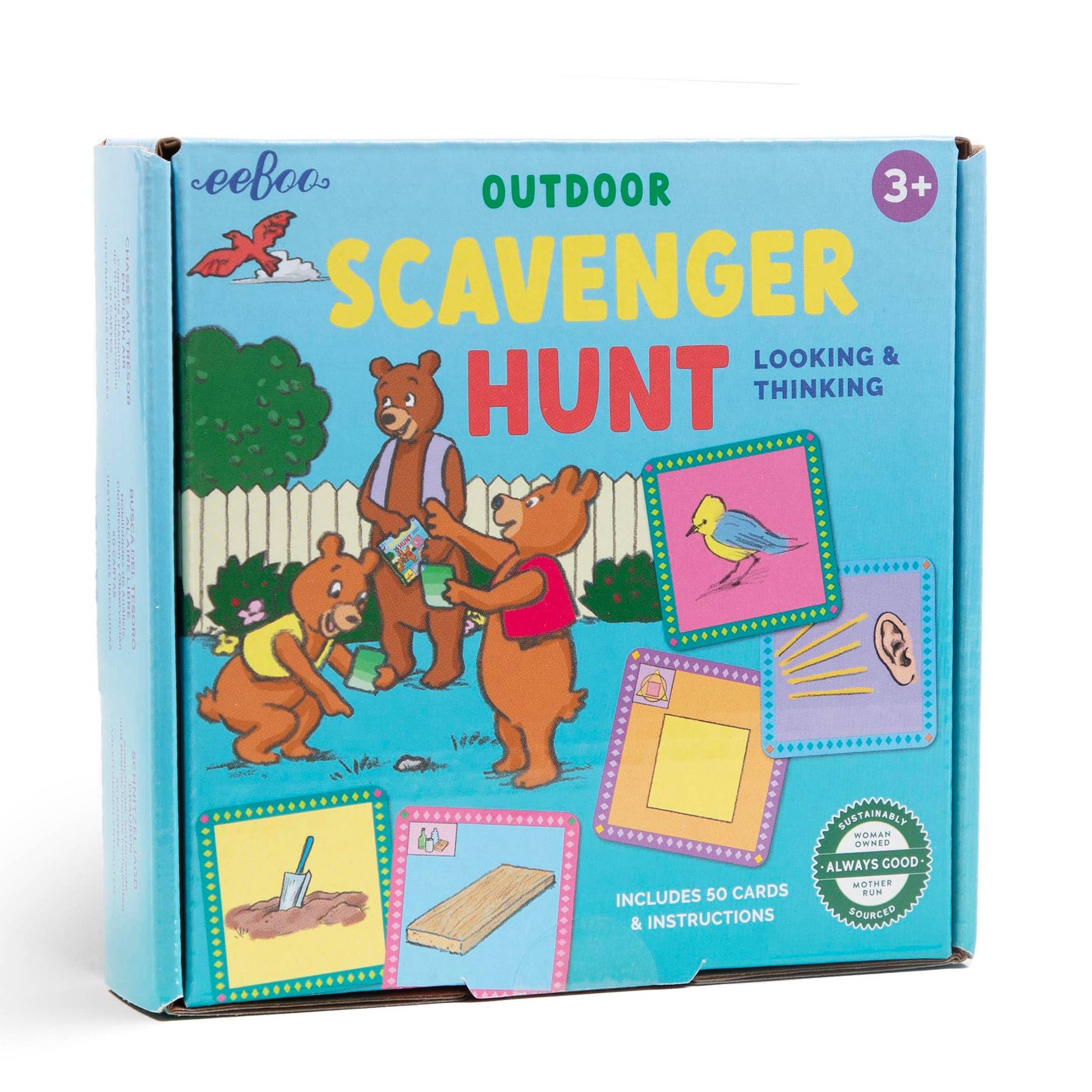 eeBoo’s Outdoor Scavenger Hunt is a finding game, not a gathering game, inspiring flexible, cross-categorical thinking while developing observational and analytical skills. Adaptable to any climate, children search for common objects or their attributes—color, size, material, texture, pattern, sound, smell, number, or resemblance. Artwork by Saxton Freymann.