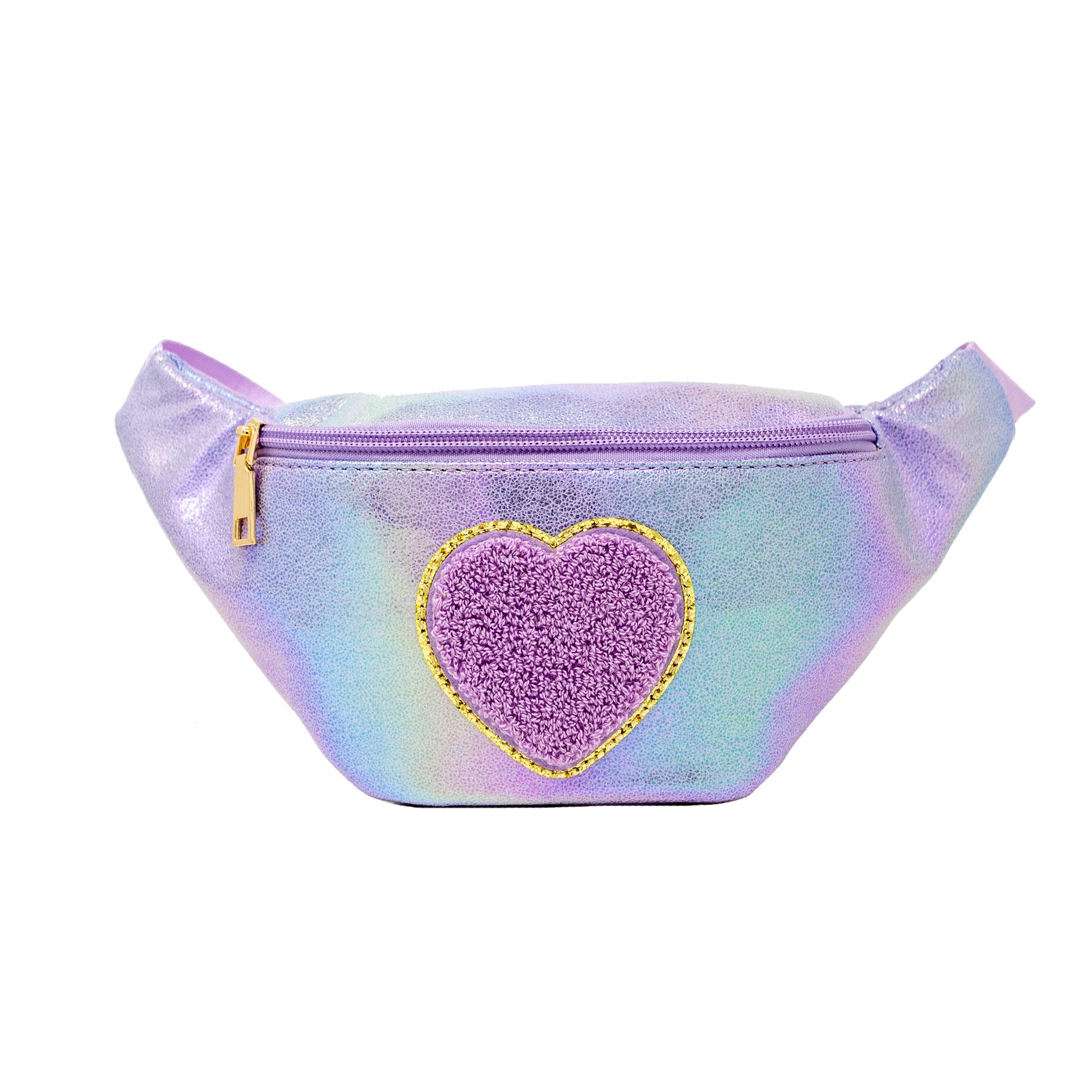 This adorable fanny pack features a fuzzy heart patch on the front. Wear it around your waist or sling in on your shoulder, either way its sure to make you shine. It is large enough to fit a wallet, phone and other small accessories. It has a high quality adjustable strap that will fit anyone.