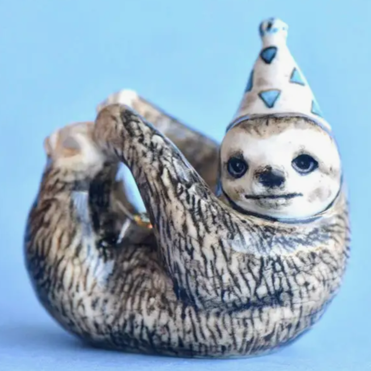 The Sloth Cake Topper brings a fun flare to all of your birthdays, anniversaries, and other special occasions! These party animals bring the spirit and beauty of nature to any cake or dessert! Camp Hollow is committed to creating keepsakes that are crafted from fine porcelain, meticulously hand painted in detail, heirloom quality, and highly collectible. Fits a 5mm-7mm candle.