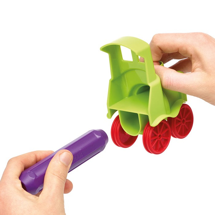 These lucky safari animals are on the move! 4 extra-large train cars – and 3 soft animals – connect with magnets. Snap them together in countless ways, for hours of imaginary play. 25 pieces, including an engineer.