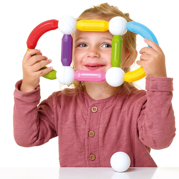 Have fun building incredible structures with SmartMax! SmartMax allows children to explore magnetism safely. The oversized pieces are specifically designed for handling by young kids as they learn about the effects of magnetic attraction and repulsion, while older children will have fun using the pieces to construct towers, bridges and other creations. They magnets are strong enough to carry up to 60 times their weight!