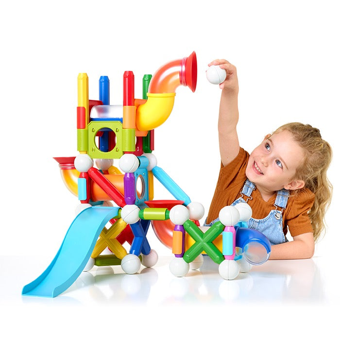 Build the ultimate ball run with this large SmartMax magnetic construction set that contains an amazing 71 pieces!