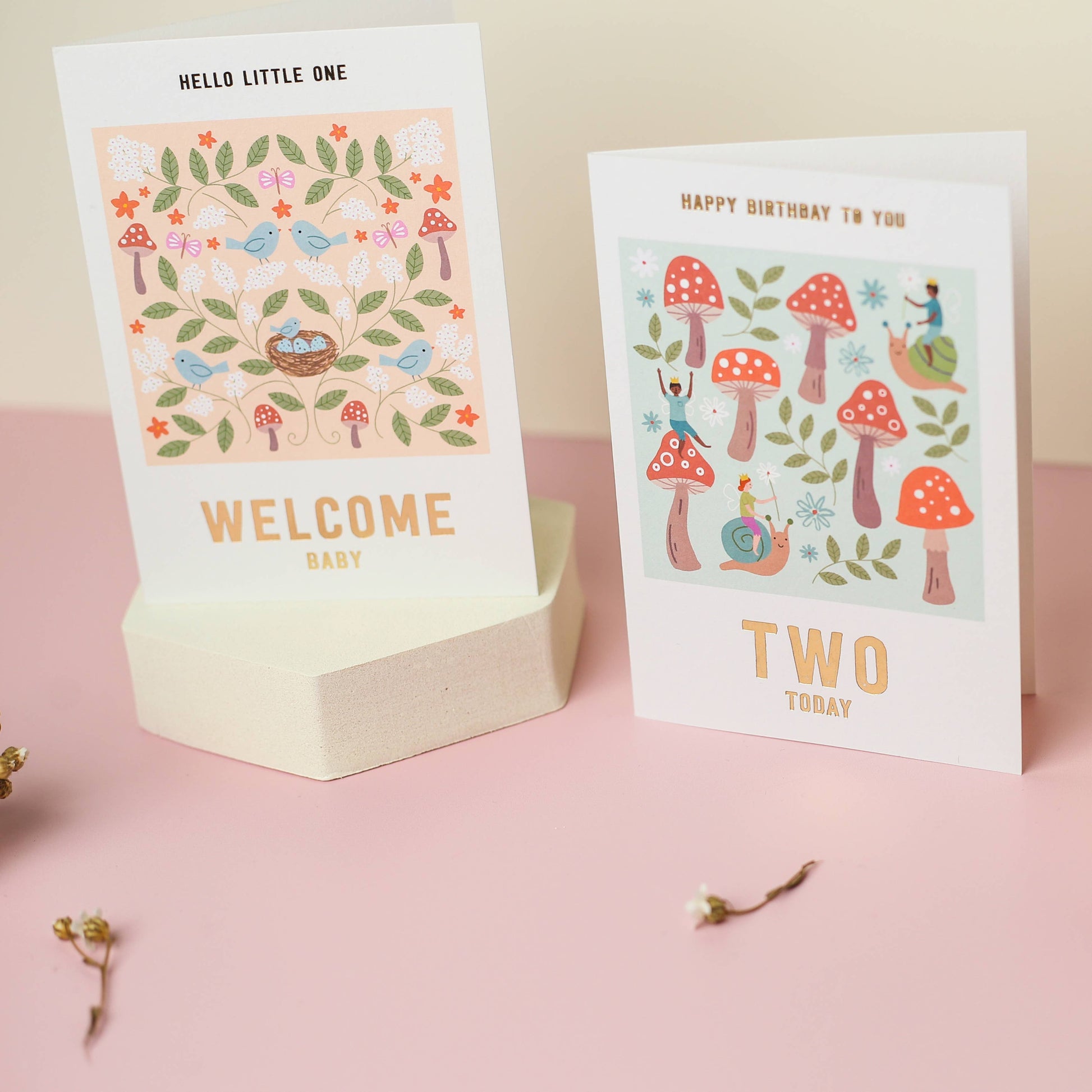 Hey there cutie! Welcome to the world, you’re going to love it. Send a greeting packed with flowers and little birdies to a new little human with this lovely new baby card from Mifkins. Featuring a gorgeous floral illustration and gold foil captions reading ‘Hello Little One’ and ‘Welcome Baby’, this new parent card uses a gender neutral colour palette perfect for greeting all wee bubs.